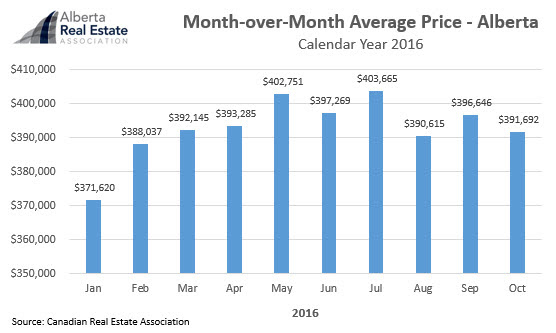 The average MLS® residential price rose 1.9 per cent from October 2015 to $391,692.
