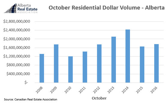 The value of all home sales in the province totalled $1.77 billion for the month, rising 6.6 per cent from October 2015.