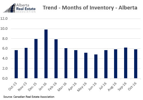 There were 5.8 months of inventory at the end of October 2016, up slightly from 5.7 months at the same time one year ago.